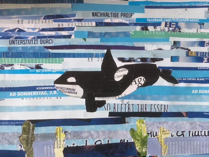 Auch unser Gestalten-Projekt ist unserem aktuellen Medien-Thema angepasst: wir machen eine Zeitschriftencollage! Recht viel Arbeit, aber sieht toll aus!