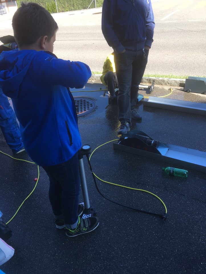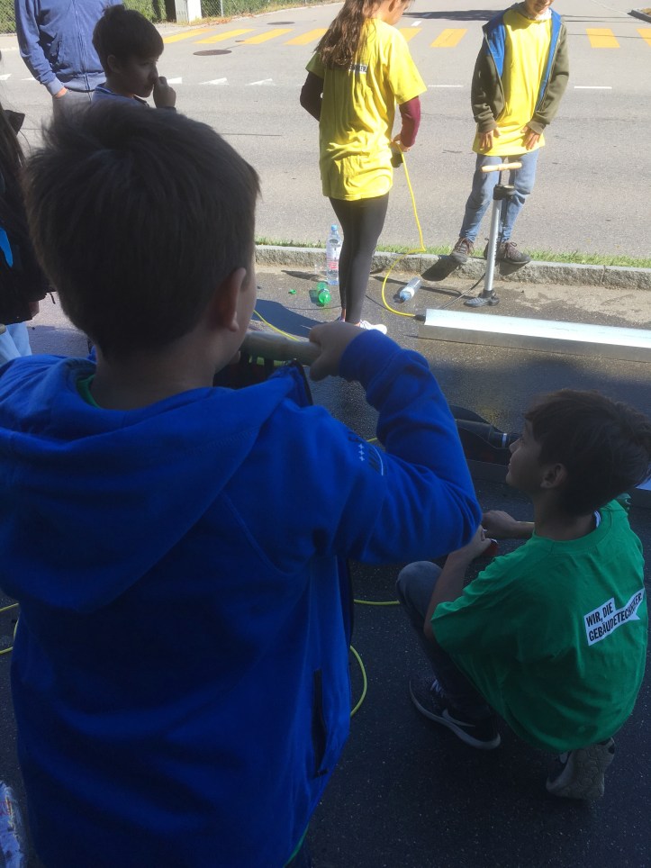 Der Workshop wurde von Suissetec organisiert. Gebaut wurde eine Raketenmobilfahrzeug mit Rückstossantrieb. Am zweiten Tag gab es ein Rennen und Schnüggu war in der Gewinnergruppe, da sie mit ihrer Schätzung übet die Distanz ihrer Fahrzeuge nur zwei Meter daneben lagen!