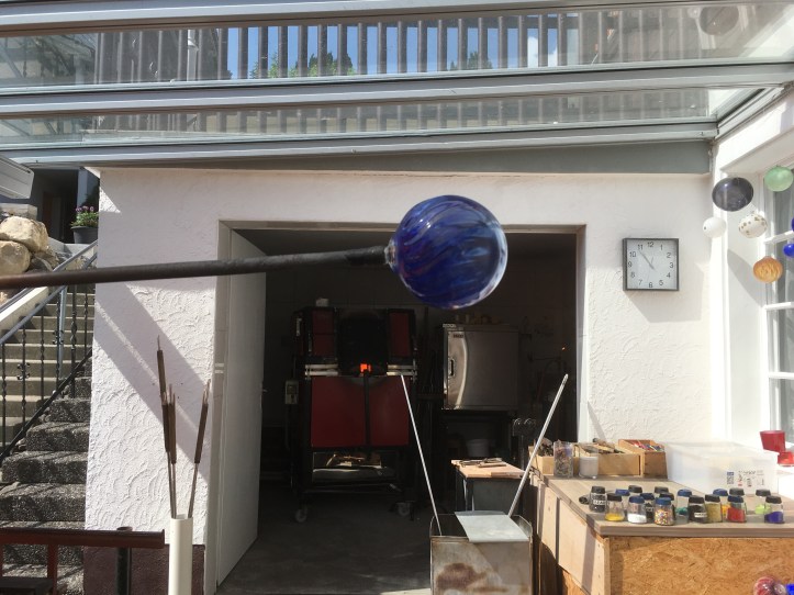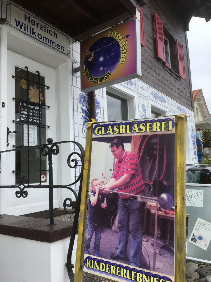 Am Montag konnte Schnüggu Luftpistole schiessen und gestern konnte Schnüseli in einer kleinen Glasblaserei in Gwatt bei Thun ihre eigene schöne Glaskugel blasen. Sehr empfehlenswert!