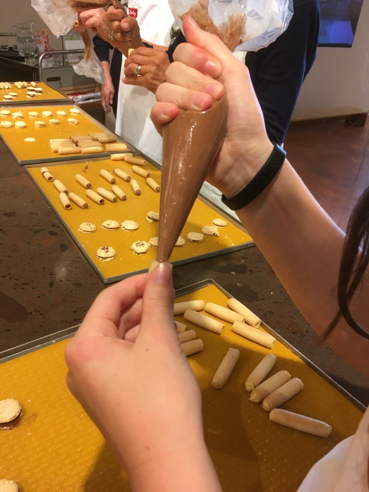 Da unsere Kids immer wieder gerne zur Kambly Fabrik in Trubschachen (Emmental) gehen, habe ich sie und unseren kirgisischen Gast auch diesen Sommer wieder zum Backen angemeldet.