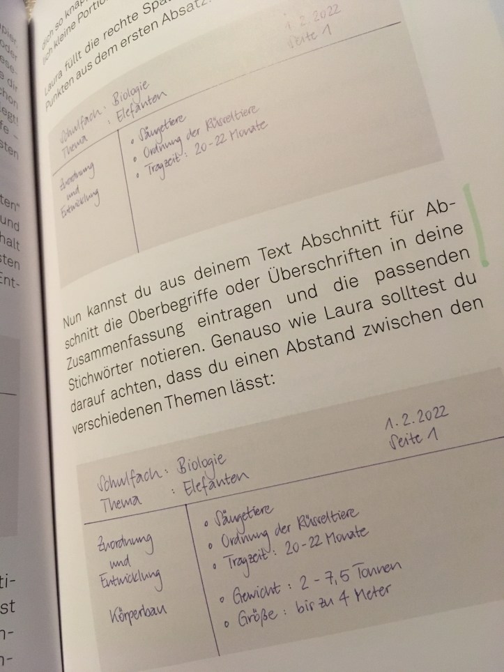 Auch das Kapitel über das Lesen und Verstehen von schwierigen Texten fand ich sehr hilfreich (ja, sogar für mich, wenn ich in diesen Tagen wieder mit einem neuen Studium anfange!). Hier lernen die Jugendlichen in fünf Schritten, wie man einen schwierigen Text am Besten liest, damit man ihn im Anschluss dann auch im Kopf behaltet. Auch wird darauf eingegangen, wie sie auf clevere Art eine gute Zusammenfassung schreiben können. Sehr hilfreich!