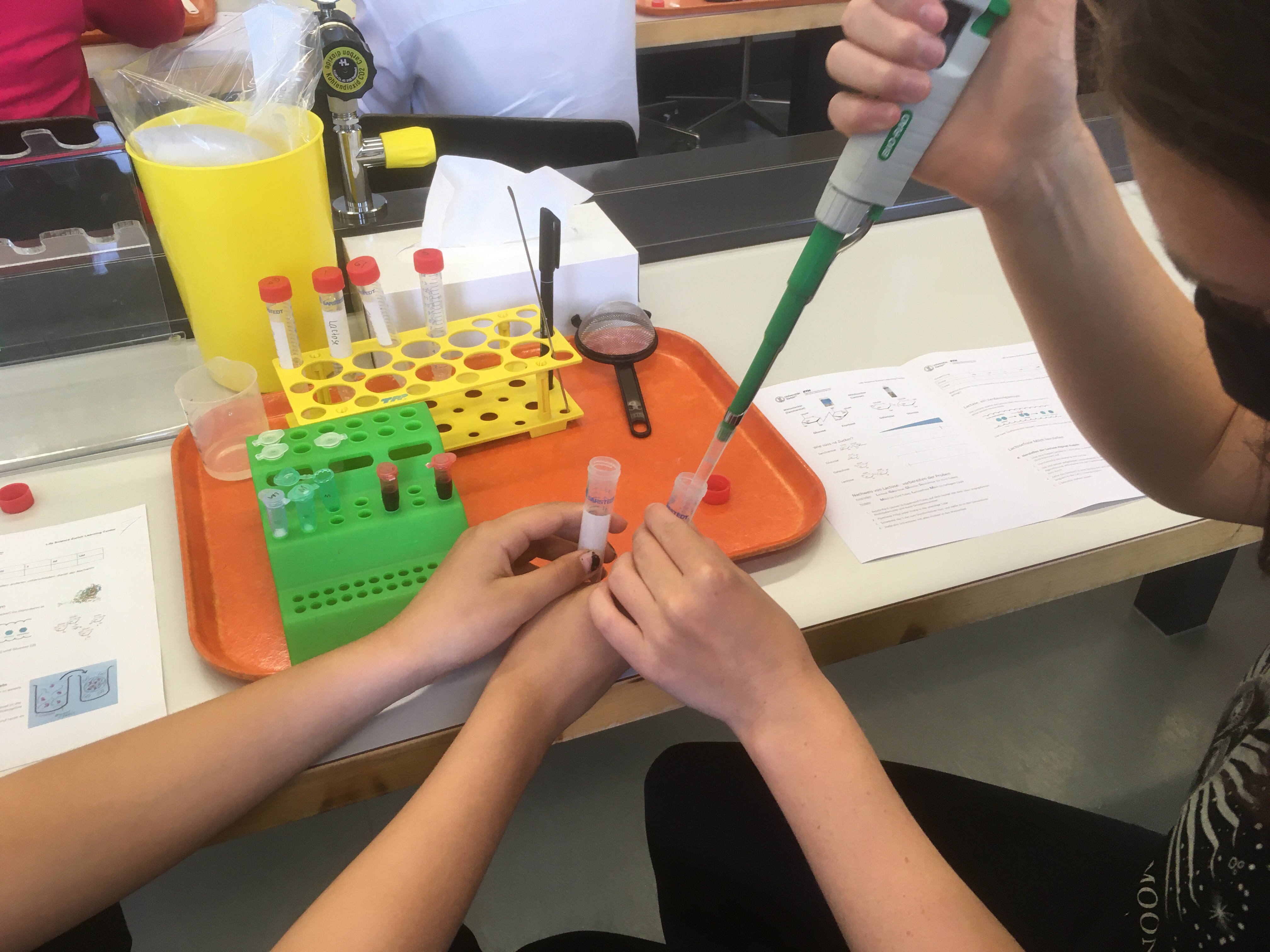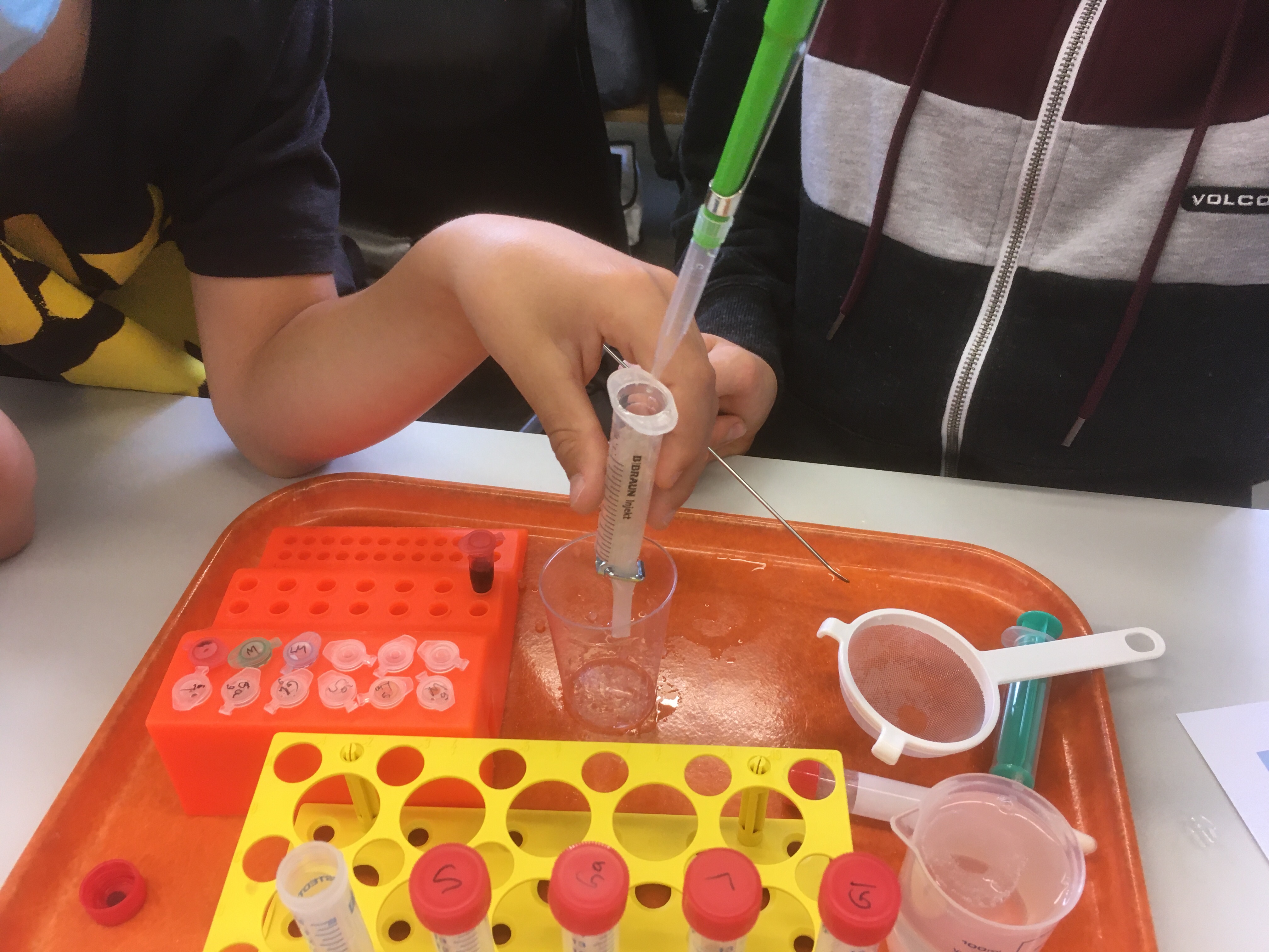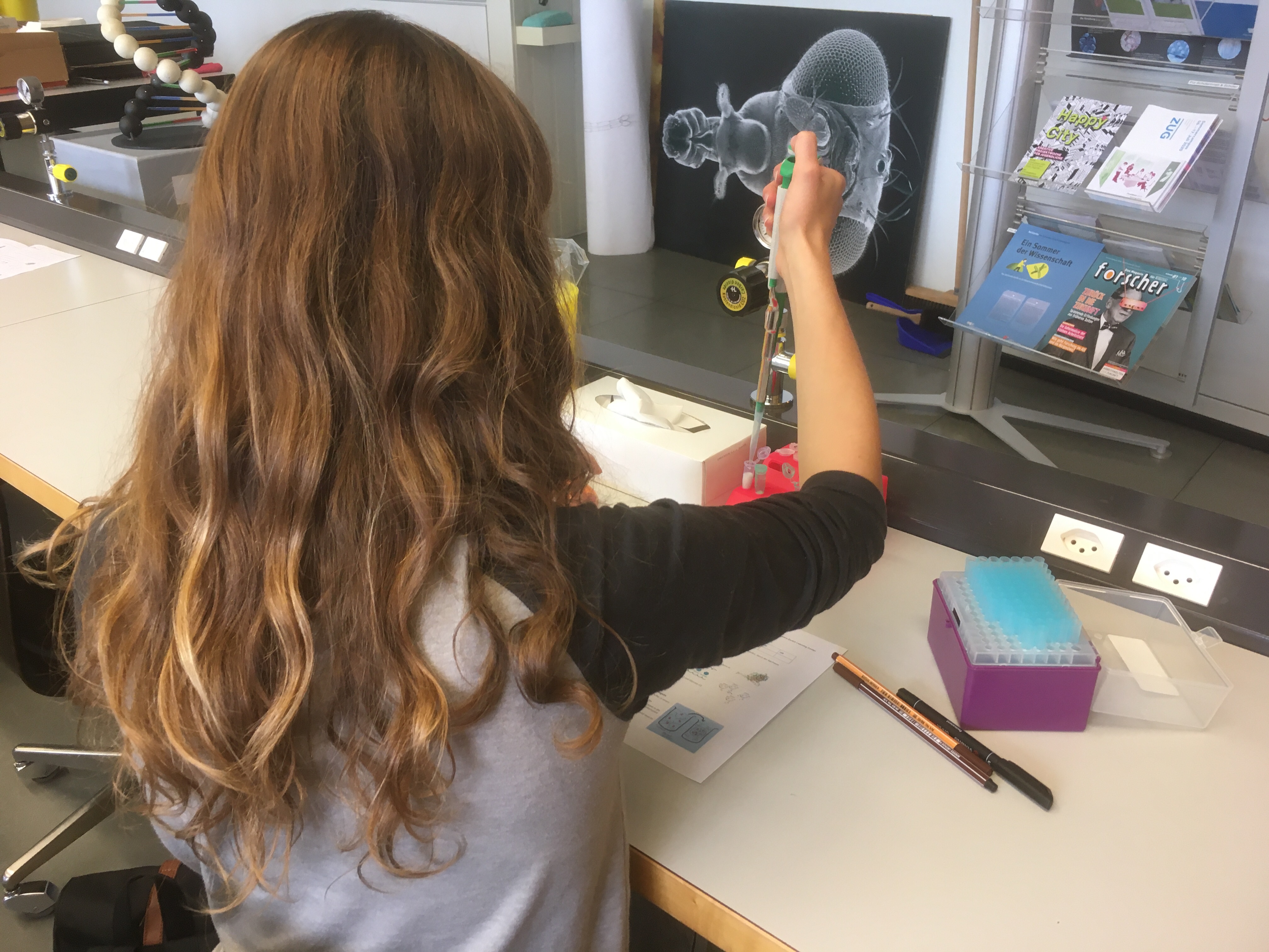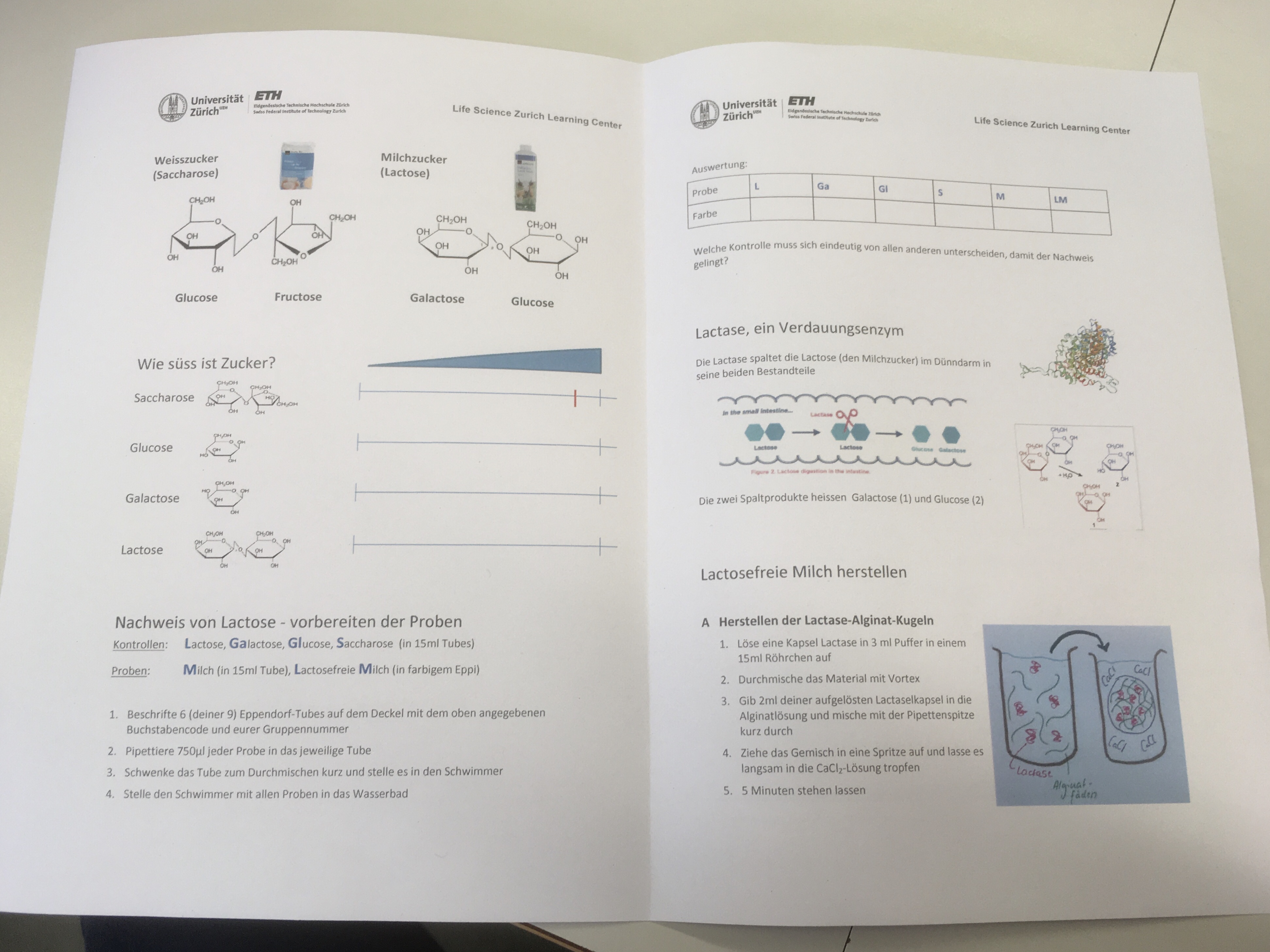 Am Morgen war das Thema: Milch – Biochemie zum Anfassen und lernten die Jugendlichen über die Bestandteile von Milch und die verschiedenen Zuckerarten. Mit einer speziellen Pipette wurde anschliessend gearbeitet, um lactosefreie Milch herzustellen.