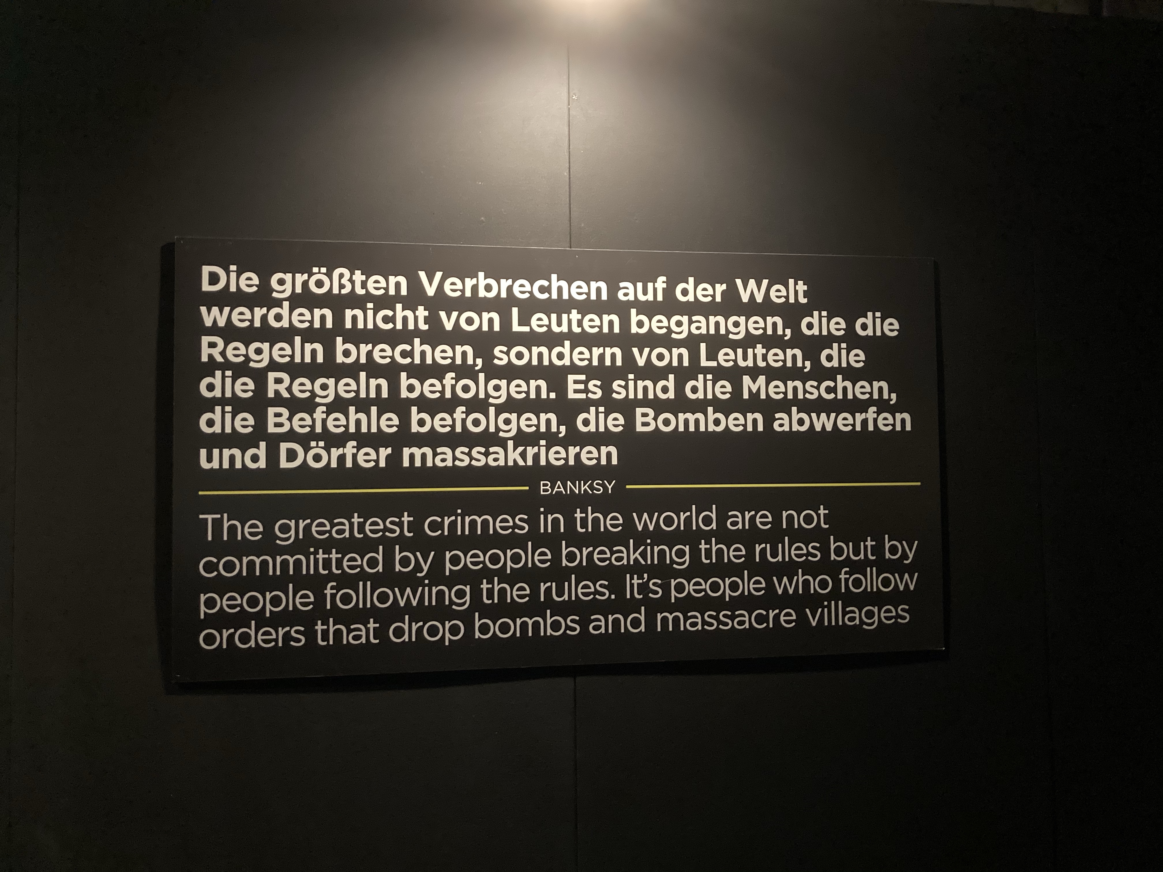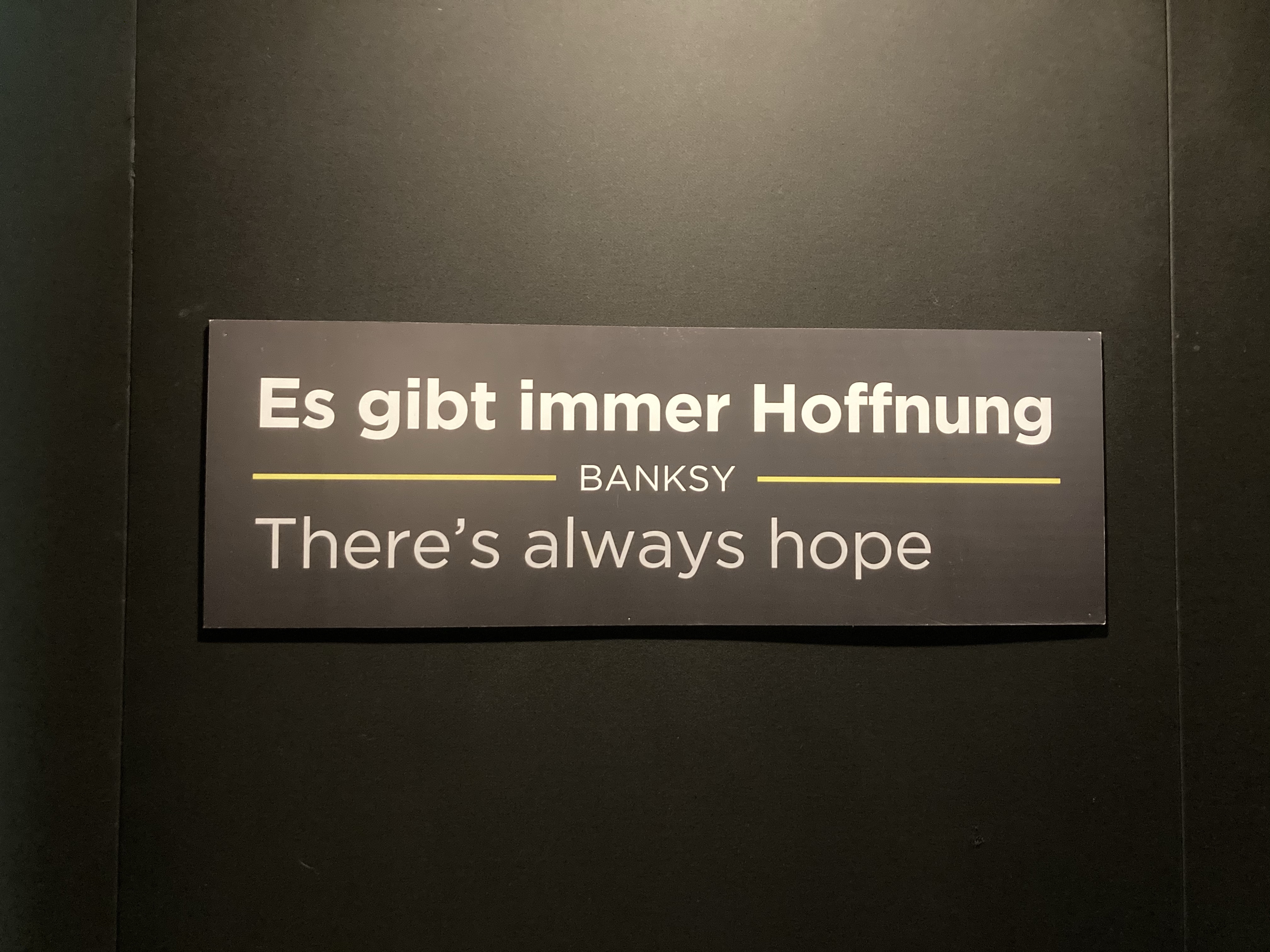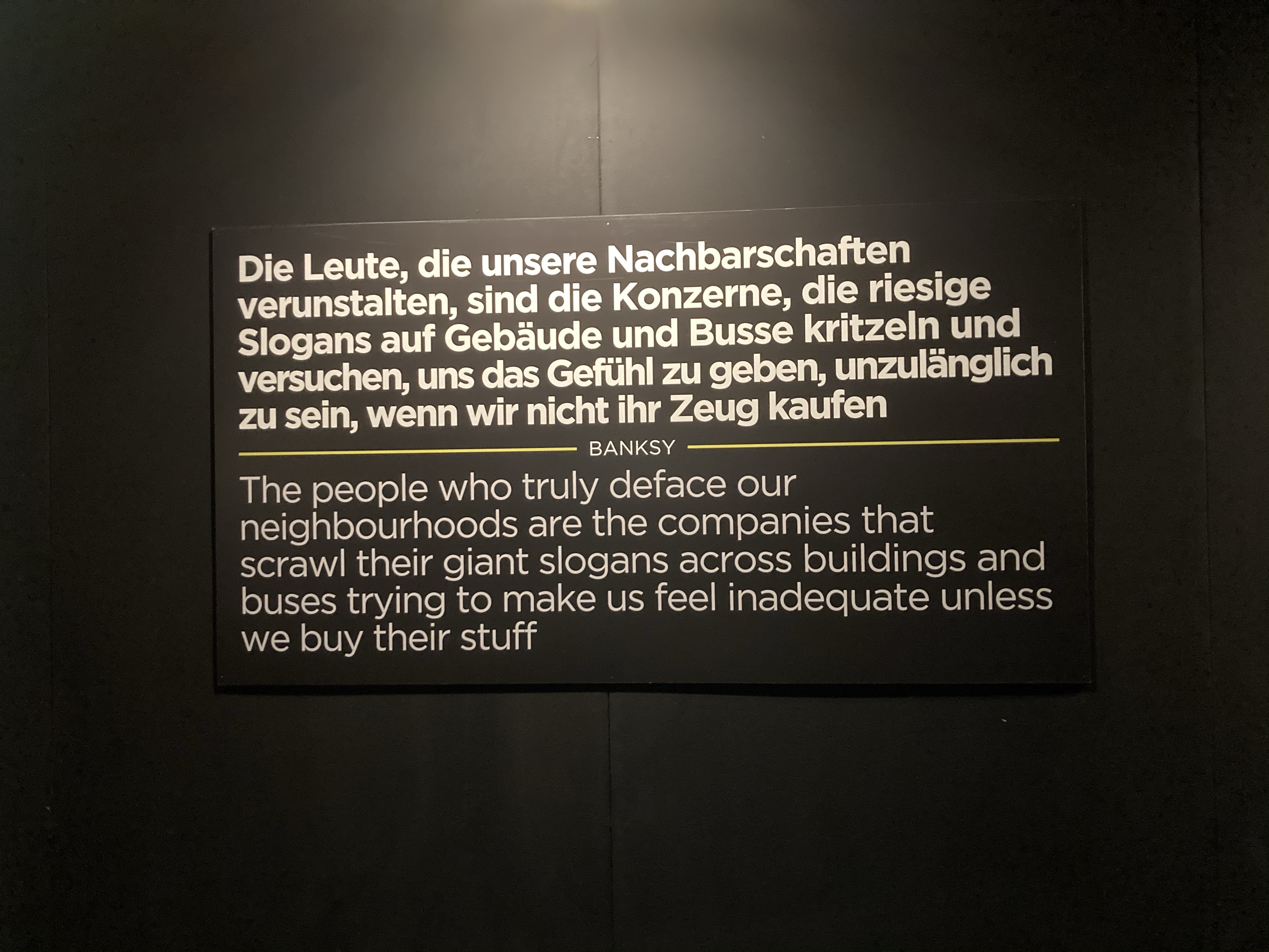 Die Ausstellung gefiel uns sehr. Sie gab auch viel zu reden. Ja, einerseits konnten wir Banksys Bilder anschauen, aber andererseits war genau diese Ausstellung nicht im Sinne von Banksy selbst. Er möchte nicht, dass ein paar wenige sehr viel Geld mit seiner Kunst verdienen. Seine Kunst ist für alle da. Auch forderten uns seine Bilder und seine Aussagen heraus und hatten etliche Diskussionen zur Folge. Wahrlich geht Banksy in die Kunstgeschichte ein und wird wohl mit seiner Street Art die Welt der Kunst nachhaltig ziemlich aufmischen.