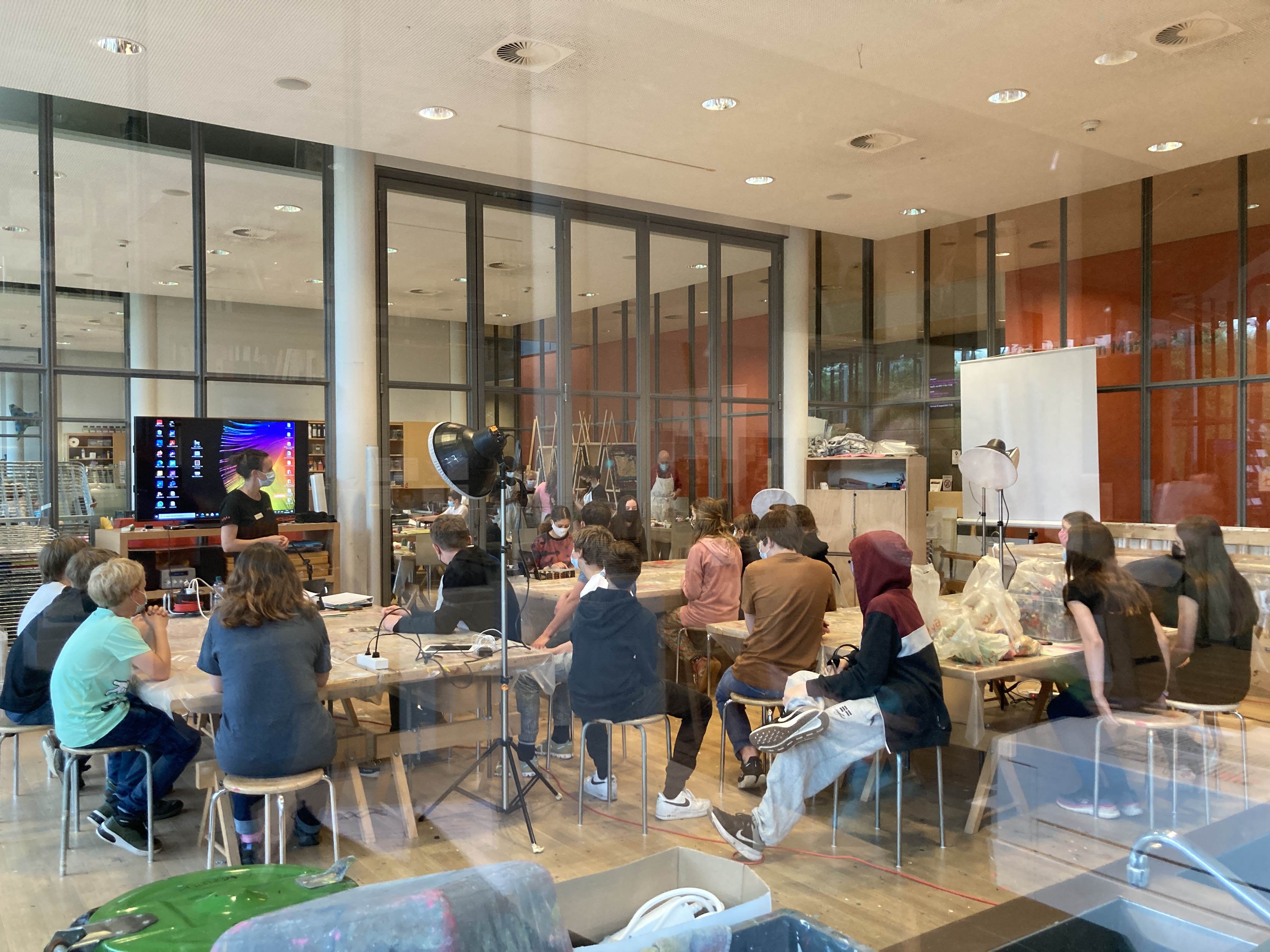 Nach einem interaktiven Rundgang in der aktuellen Ausstellung kreierten die Jugendlichen in 3er-Gruppen kurze Stopmotion-Videos. Dabei durften sie das Thema frei wählen und teilten sie sich auf in „Regie“, „Hintergrund“ und „Kamera“. Die Originalwerke von Paul Klee dienten als Ausgangspunkt und Inspiration. So lernten die Teens die bewegte Bildsprache kennen und konnten kreativ experimentieren.