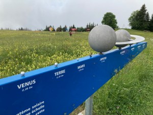 Am Mittwoch war Wandern angesagt, aber leider spielte das Wetter diesmal nicht besonders mit. Wir fuhren mit unserer kleinen Zahnradbahn zwei Haltestellen hoch zu Les Pléiades, wo wir die verschiedenen Posten zum Universum anschauten und dabei viel lernten, was über unser eigenes Sonnensystem hinausging. Leider zog dann aber Nebel auf und beschlossen wir, statt einer Rundwanderung zu machen, hinunter zu unserem Chalet zu wandern. Diese Wanderung war etwas mühsam, da relativ steil hinunter und viel Matsch im Wald dank des vielen Regens, aber relativ kurz, so dass wir bereits zum Mittagessen wieder Zuhause waren. Da das Wetter nach wie vor sehr unbeständig war, blieben wir den Rest vom Tag im und ums Chalet. Die Jugendlichen genossen die freie Zeit zusammen und es wurde viel gelacht, gespielt, Musik gehört, getanzt (auch im Regen!) und geplaudert.