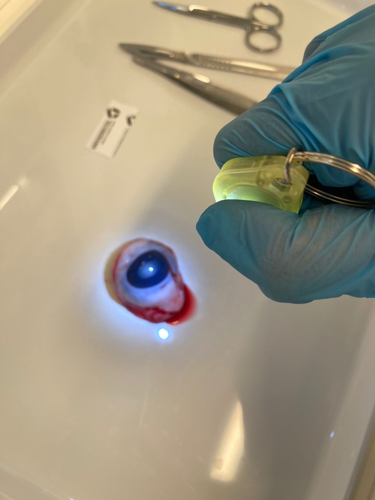 Die Jugendlichen lernten, wie der Titel des Workshops bereits sagt, den Aufbau des Auges kennen und konnten dies gleich selber herausfinden, indem sie ein Rinderauge sezieren konnten. Das schafften alle ohne grössere Probleme! Bravo! Auch konnten sie verschiedene Experimente zum Thema Optik machen und lernten, warum es zu Kurz- bzw. Langsichtigkeit kommt und wie es ist, mit einer Sehbehinderung zu sehen.
