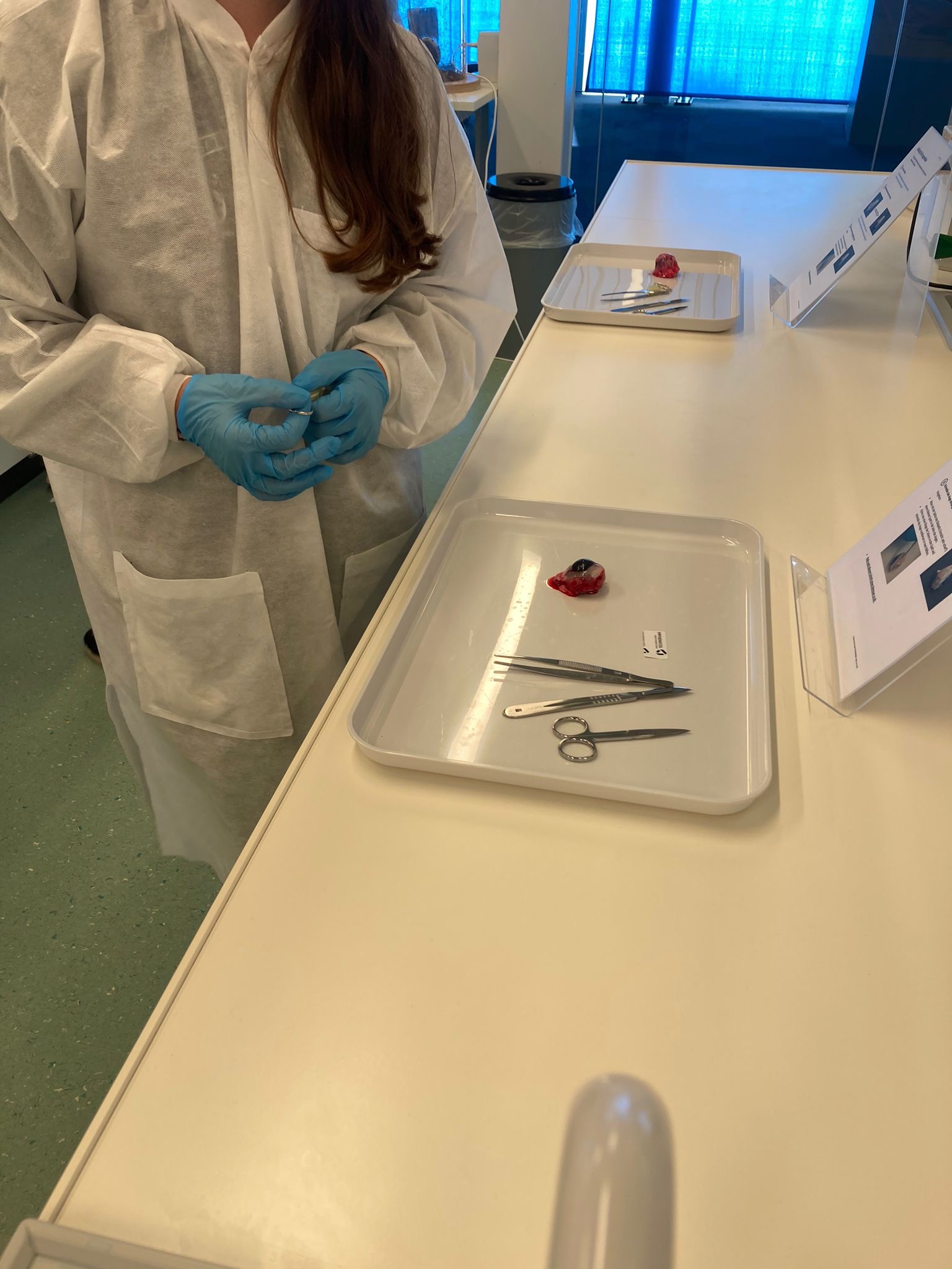 Die Jugendlichen lernten, wie der Titel des Workshops bereits sagt, den Aufbau des Auges kennen und konnten dies gleich selber herausfinden, indem sie ein Rinderauge sezieren konnten. Das schafften alle ohne grössere Probleme! Bravo! Auch konnten sie verschiedene Experimente zum Thema Optik machen und lernten, warum es zu Kurz- bzw. Langsichtigkeit kommt und wie es ist, mit einer Sehbehinderung zu sehen.