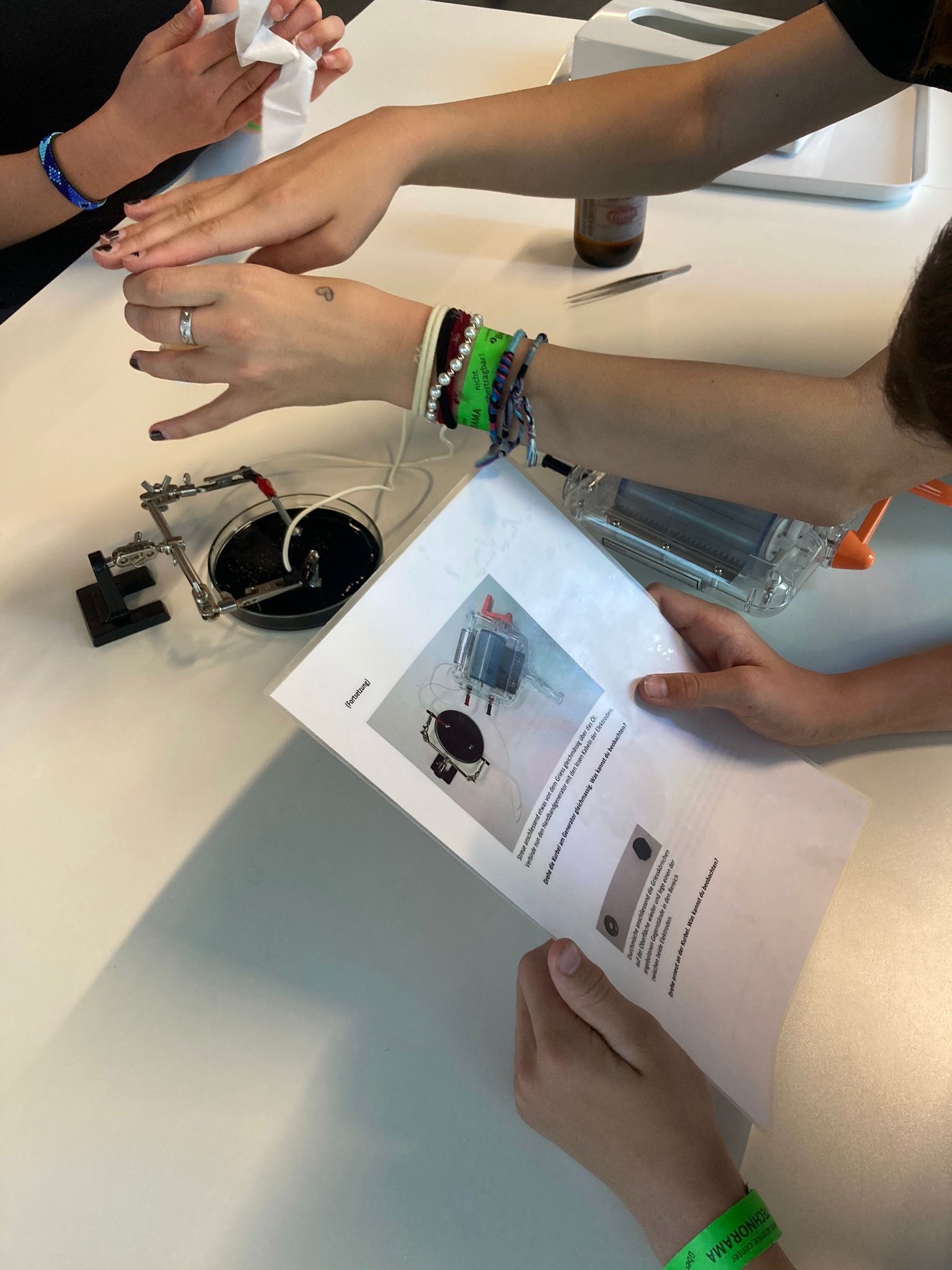 Anschliessend nahmen die Teens noch an einem Workshop zum Thema „Bioelektrische Orientierung“ teil, wo es darum ging herauszufinden, ob Menschen auch über eine elektrische/magnetische Orientierung verfügt wie gewisse Tiere das tun. In diesem Workshop wurde auf bereits vorhandenes Wissen über Elektromagnetismus aufgebaut und wurde die Frage beleuchtet, wie wir Menschen elektrische Impulse erzeugen und wahrnehmen können.