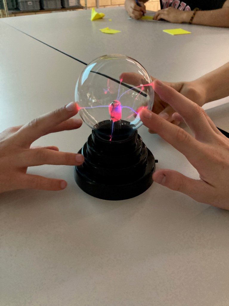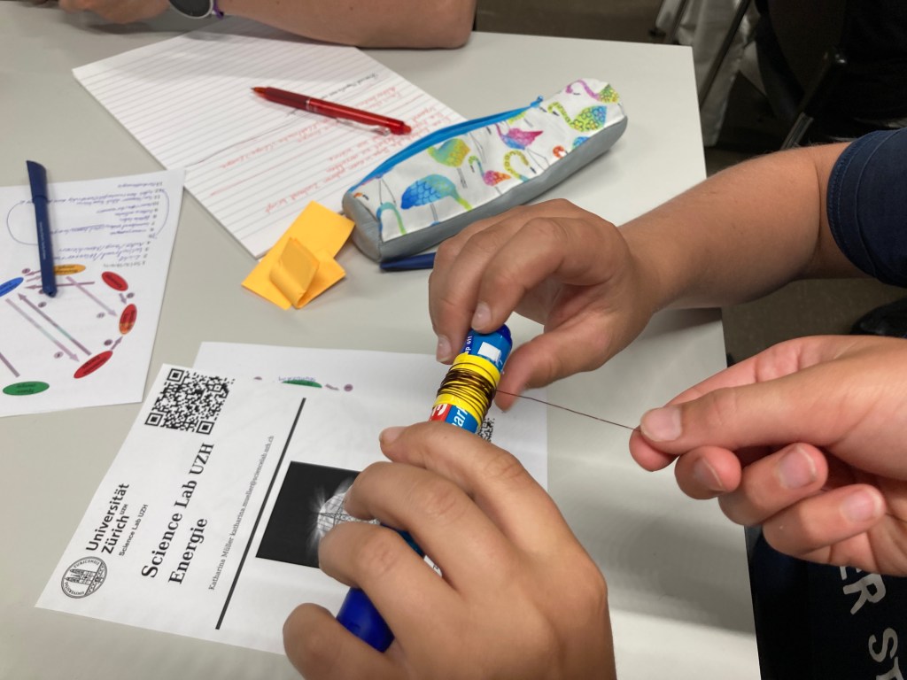 Im Mai war schliesslich der dritte Workshop, der auf den ersten aufbaute, und zwar zum Thema Energie. Die Jugendlichen untersuchten den abstrakten Begriff der Energie mit Fokus auf Energieumwandlung und Energiespeicherung und diskutierten nachhaltige Varianten für diese beiden wichtigen Bereiche in der Zukunft unserer Erde. Natürlich durften auch hier praktische Experimente nicht fehlen. Unter anderem wurde mit einem Magnet und einem Plastikbecher ein eigener Lautsprecher gebaut.