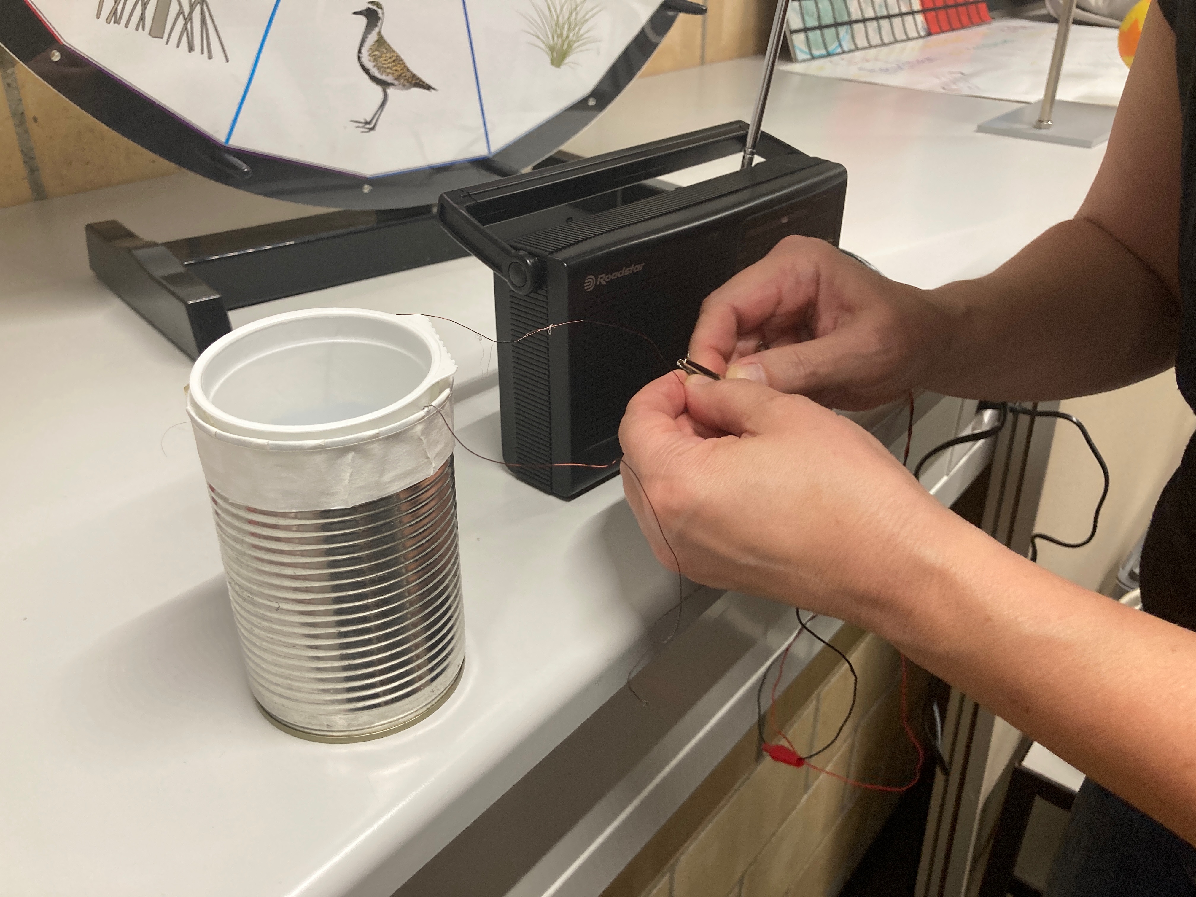 Im Mai war schliesslich der dritte Workshop, der auf den ersten aufbaute, und zwar zum Thema Energie. Die Jugendlichen untersuchten den abstrakten Begriff der Energie mit Fokus auf Energieumwandlung und Energiespeicherung und diskutierten nachhaltige Varianten für diese beiden wichtigen Bereiche in der Zukunft unserer Erde. Natürlich durften auch hier praktische Experimente nicht fehlen. Unter anderem wurde mit einem Magnet und einem Plastikbecher ein eigener Lautsprecher gebaut.