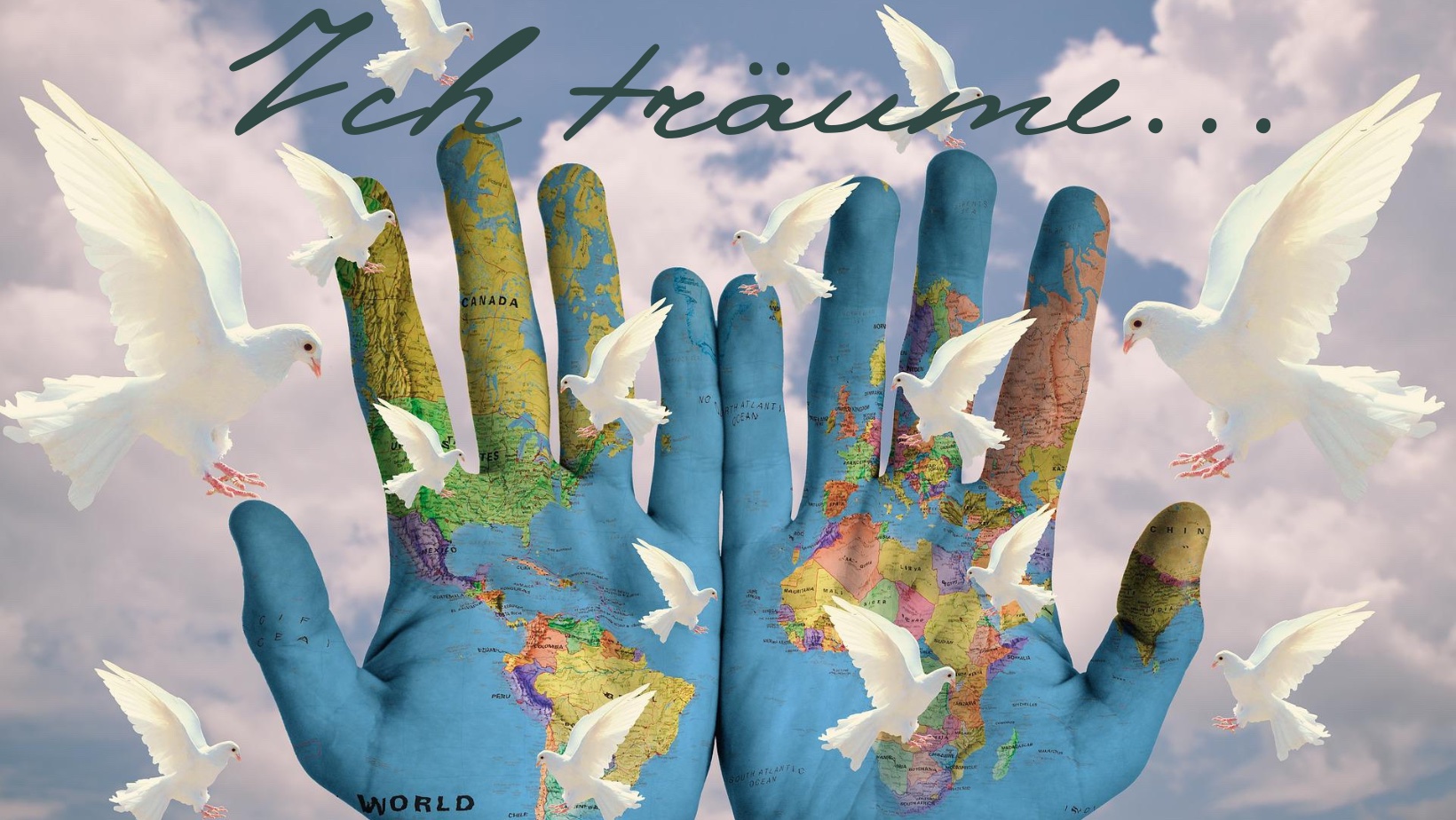 von einer Welt ohne Druck und Stress und Profitgier, in der jede und jeder ein Stück vom Kuchen haben darf, ehrlich geteilt wird, zu einander geschaut wird und jede und jeder sich gemäss ihrem und seinem Potential entwickeln, geschätzt werden und sich für die Gesellschaft als Ganzes einsetzen kann.
