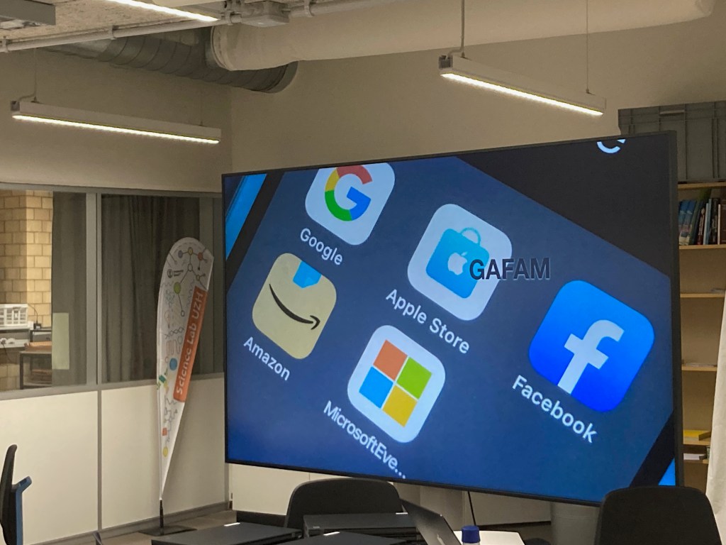 Danach tauchten wir in die Geschichte von Big Data ein, lernten das Schlüsselabkürzung „GAFAM“ (Google, Apple, Facebook, Amazon, Microsoft) kennen und wie sich die Computer-Technologie in den letzten fünfzig Jahren, v.a. dank GAFAM, entwickelt hat. Wir diskutierten über die Vor- und Nachteile und die potenziellen Gefahren.