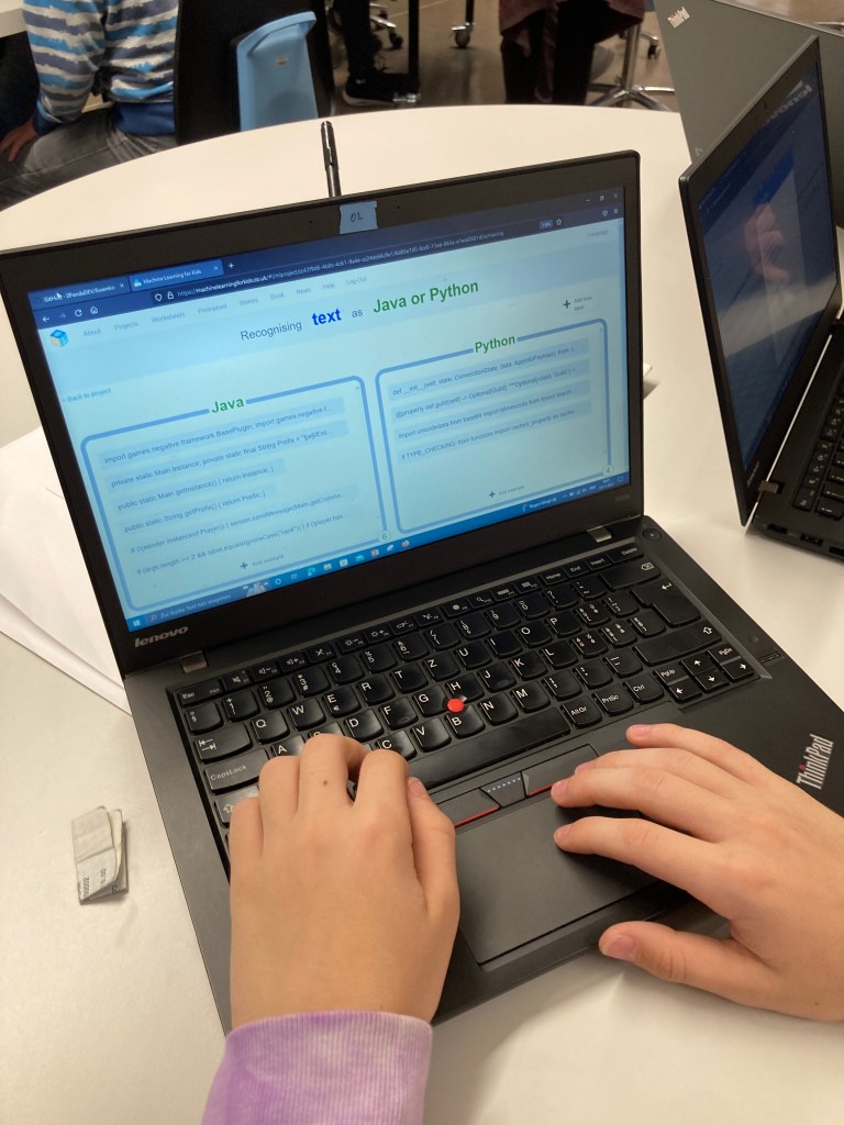 Danach wurden wir in das Thema KI eingeführt und konnten die Jugendlichen selber mit verschiedenen KIs Erfahrungen sammeln und auch eine KI so programmieren, dass es ohne Probleme Unterschiede feststellen konnte (z.B. was ist eine Katze, was ist ein Hund oder was ist eine Frau und was ist ein Mann). Sie chatteten mit verschiedenen KIs und lernten dabei, was die Vorreiter von ChatGPT können und was nicht. Auch hier wurde natürlich rege über die Zukunft von KI diskutiert.