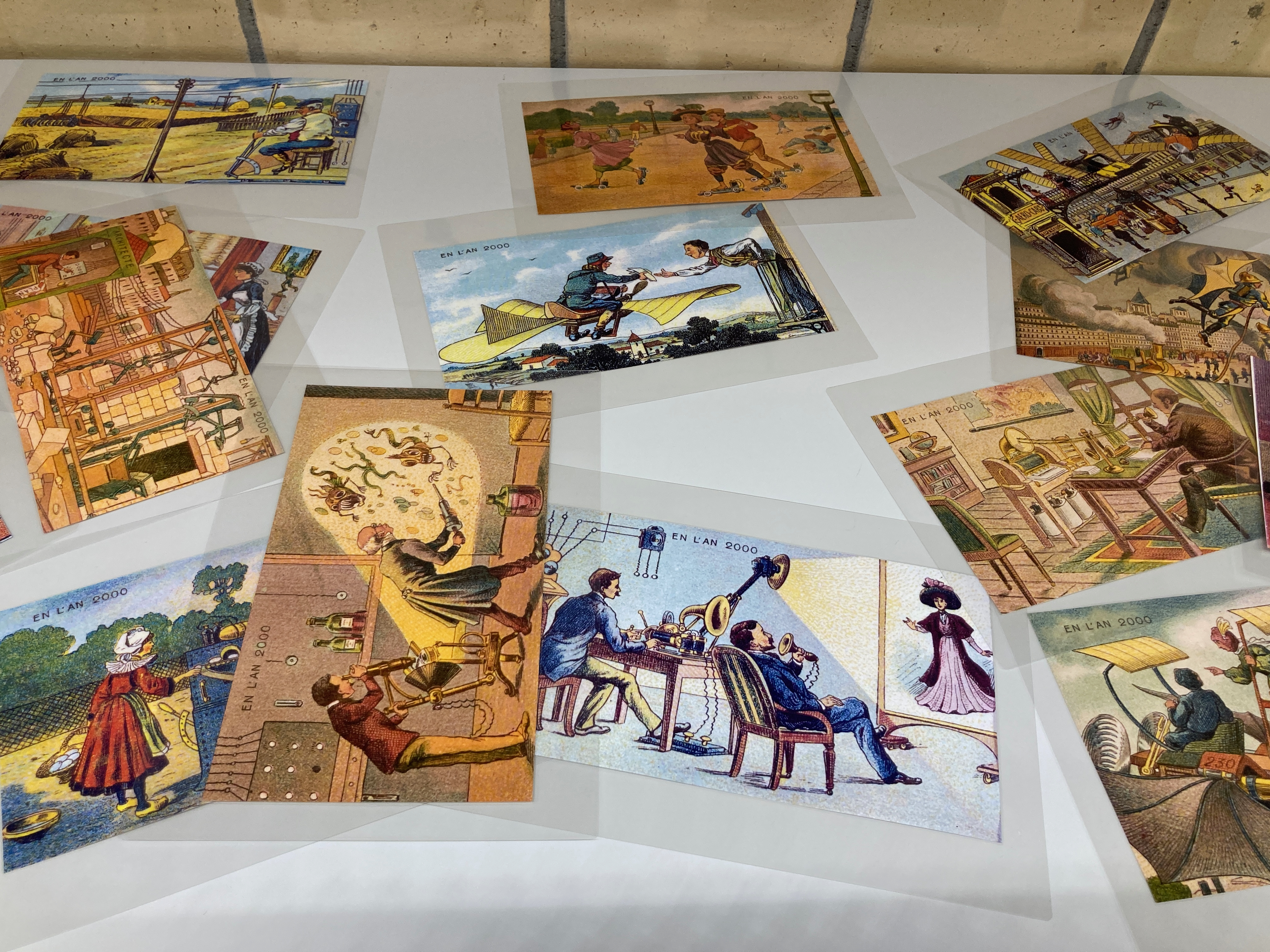 Am Morgen schauten wir uns französische Bilder vom 19. Jahrhundert an, wie sie sich damals das Jahr 2000 vorstellten. Wir analysierten diese Bilder und schauten, welche dieser Zukunftsvorhersagen tatsächlich in unserem Leben Realität sind und welche (noch) nicht. Die Resultate wurden in Gruppen präsentiert.