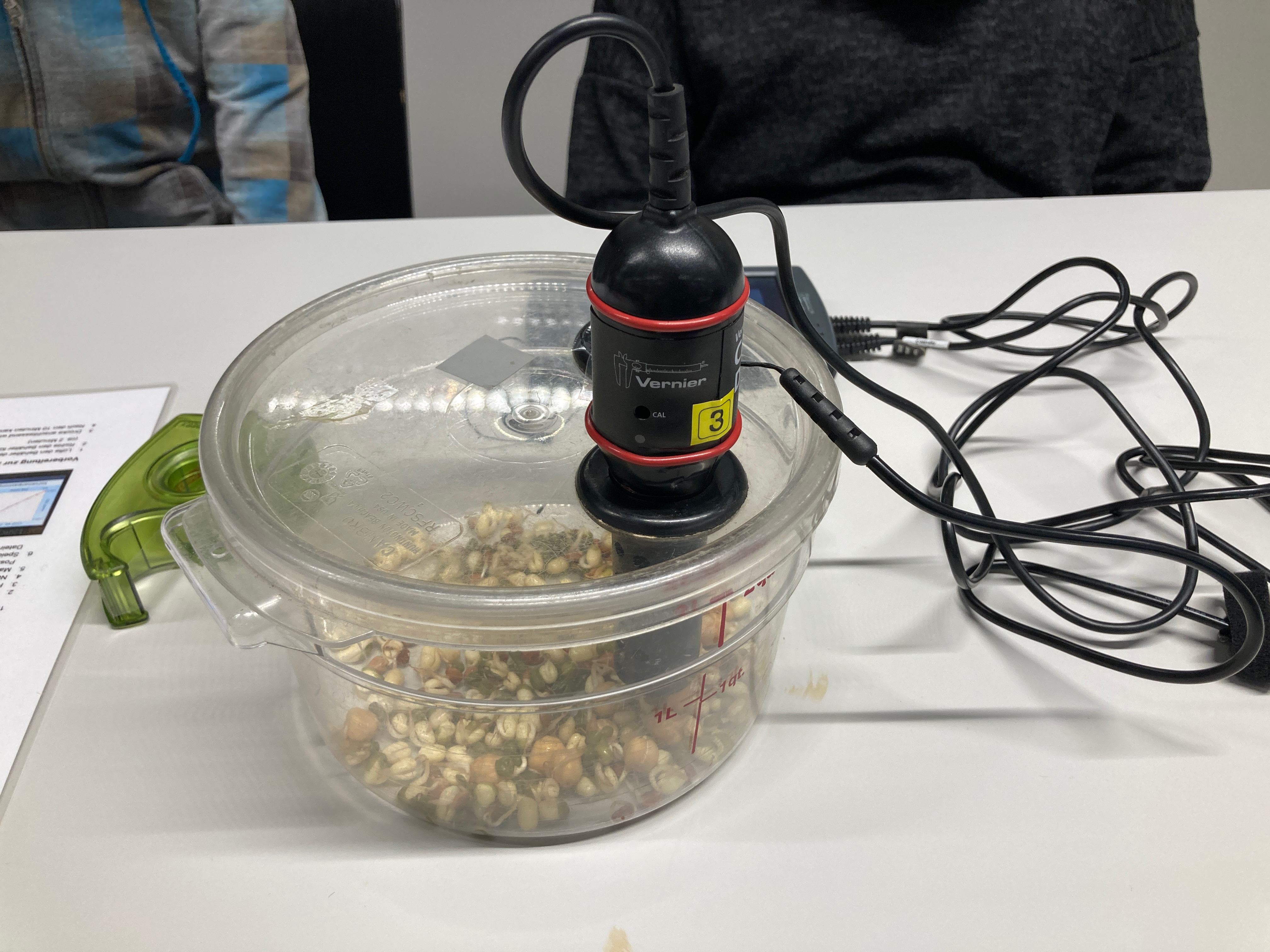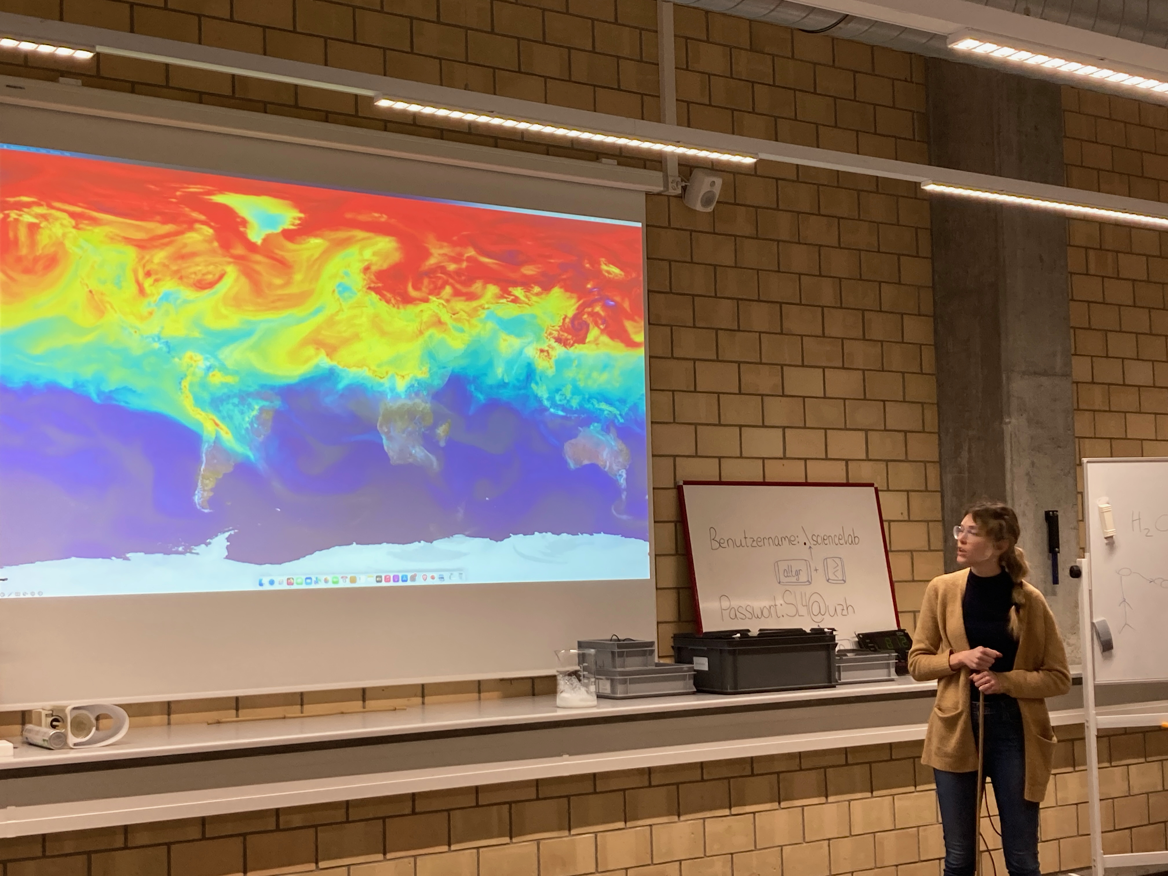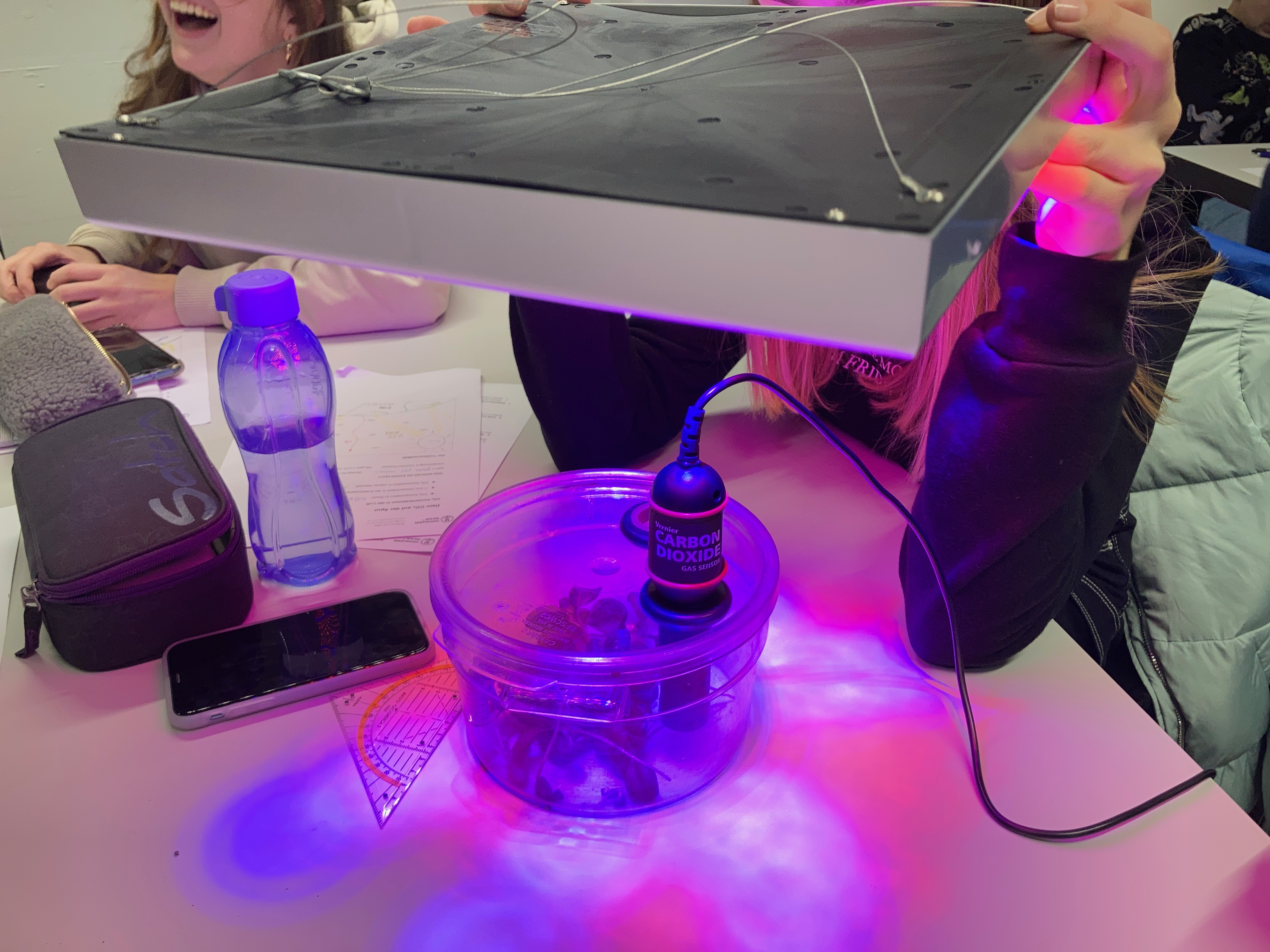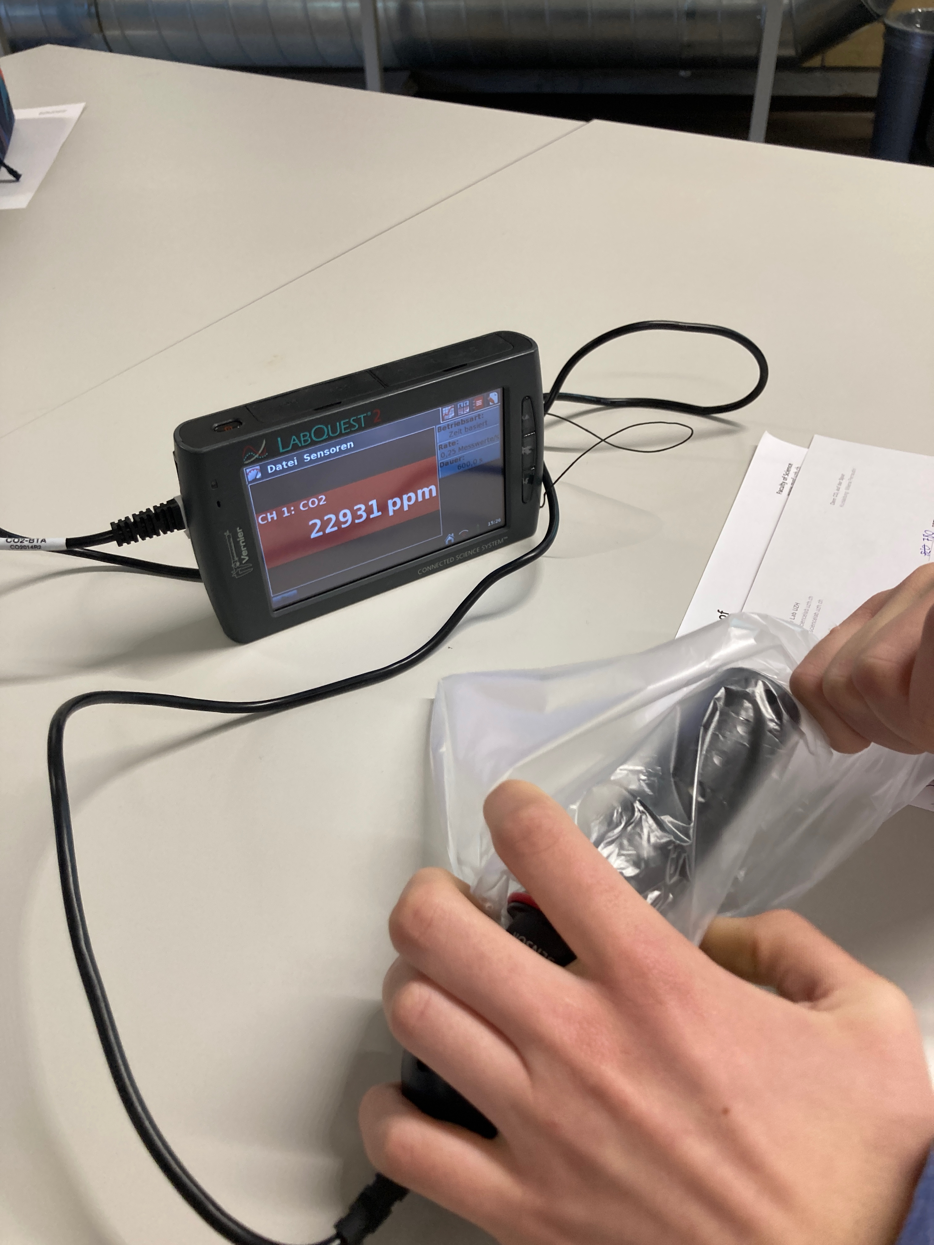 Wir wurden fachkundig in das Thema eingeführt, basiert auf unser vorheriges Wissen. Die Jugendlichen experimentierten zuerst mit dem CO2-Messer, zum Beispiel wurde gemessen, wie viel CO2 in ihrem Atem steckt, wenn sie in ein Plastiksäckchen bliesen. Wir schauten auch CO2 Strömungen auf der Welt an und sahen den Unterschied zwischen dem Norden und dem Süden, dem Sommer und dem Winter. Danach probierten sie aus, wie die Temperatur unterschiedlich stieg, wenn die Luft viel oder weniger CO2 enthielt. Auch schauten wir uns an, wie viel CO2 Pflanzen absorbieren konnten mit Wärme und ohne Wärme und mit Tageslicht und im Dunkeln. Alles spannende Experimente!